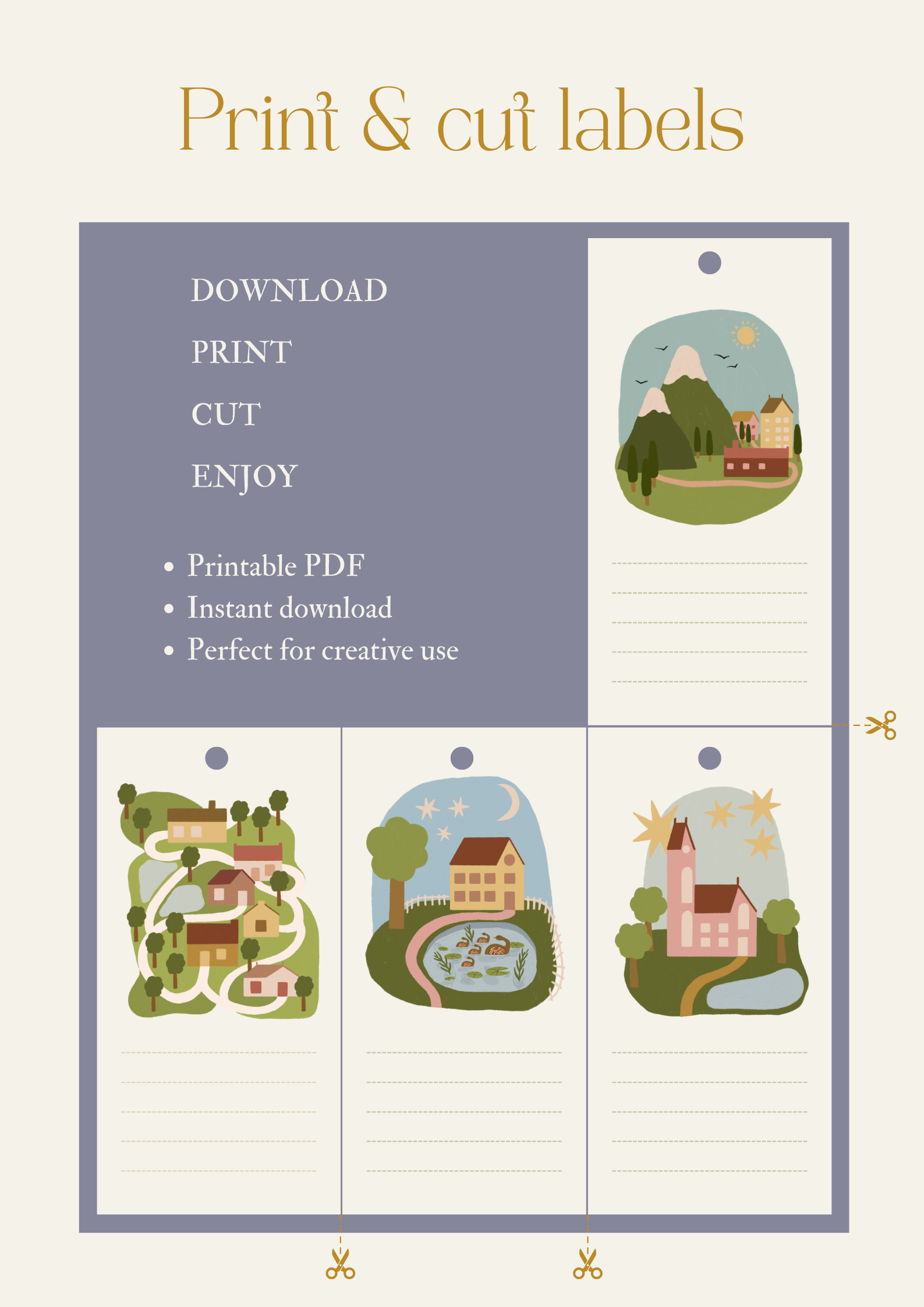 The PDF includes a set of labels, perfect for packaging, planners, journals, small businesses and DIY creations.